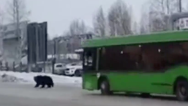 Rjava medvedka lovila človeka po mestu, dokler je ni zbil avtobus (VIDEO)